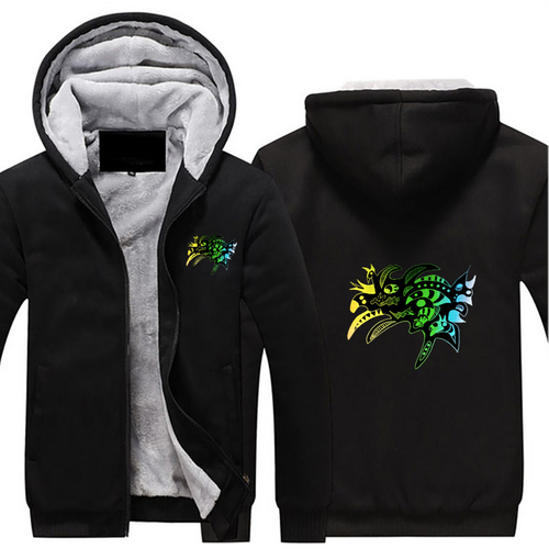 Custom Men's Thick Plush Zippered Hoodie Long Sleeve Coat