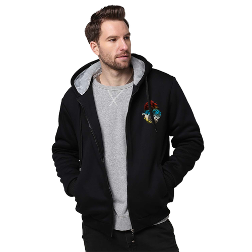 Custom Men's Thick Plush Zippered Hoodie Long Sleeve Coat