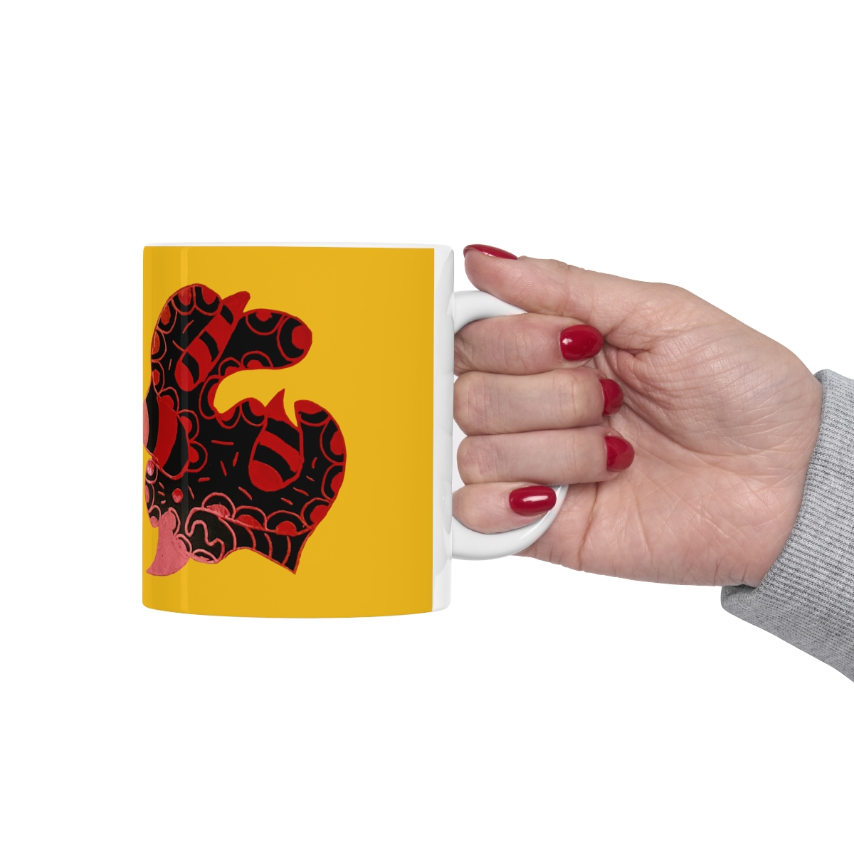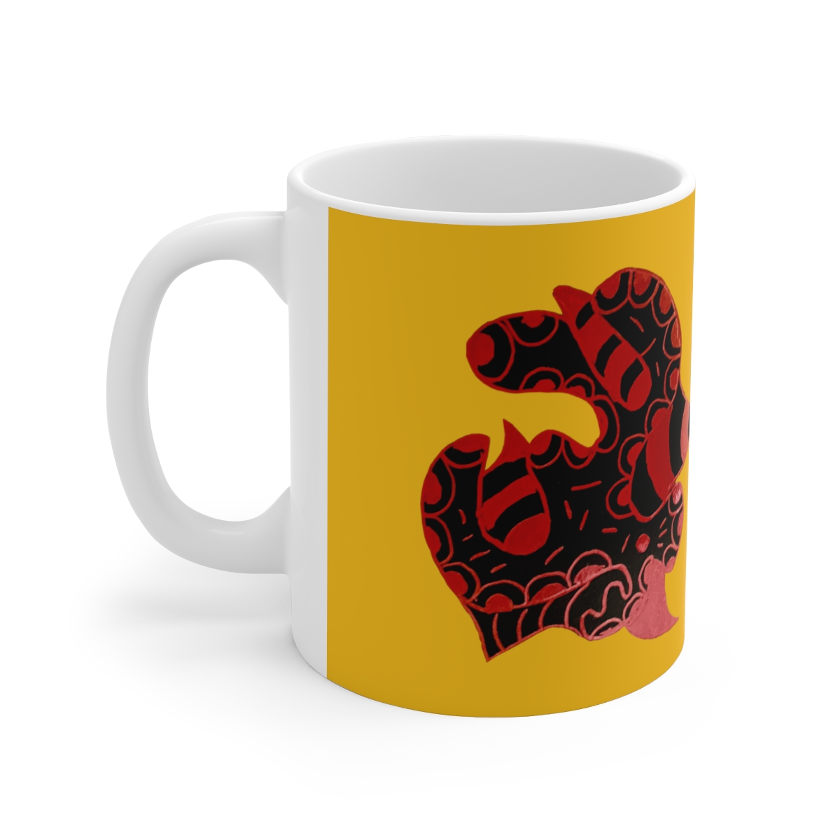 Warm-up with a nice cuppa out of this customized ceramic coffee mug. Personalize it with cool designs, photos or logos to make that "aaahhh!" moment even better. It’s BPA and Lead-free, microwave & dishwasher-safe, and made of white, durable ceramic in 11-ounce size. Thanks to the advanced printing tech, your designs come to life with incredibly vivid colors – the perfect gift for coffee, tea, and chocolate lovers..: These 11oz (0.33 l) mugs are made with durable white ceramic so that your prints can stand out. .: All mugs feature a comfortable c-handle and a shiny finish so that they're both easy to use and great to look at..: Drink confidently on a daily basis as all mugs are lead and BPA-free.