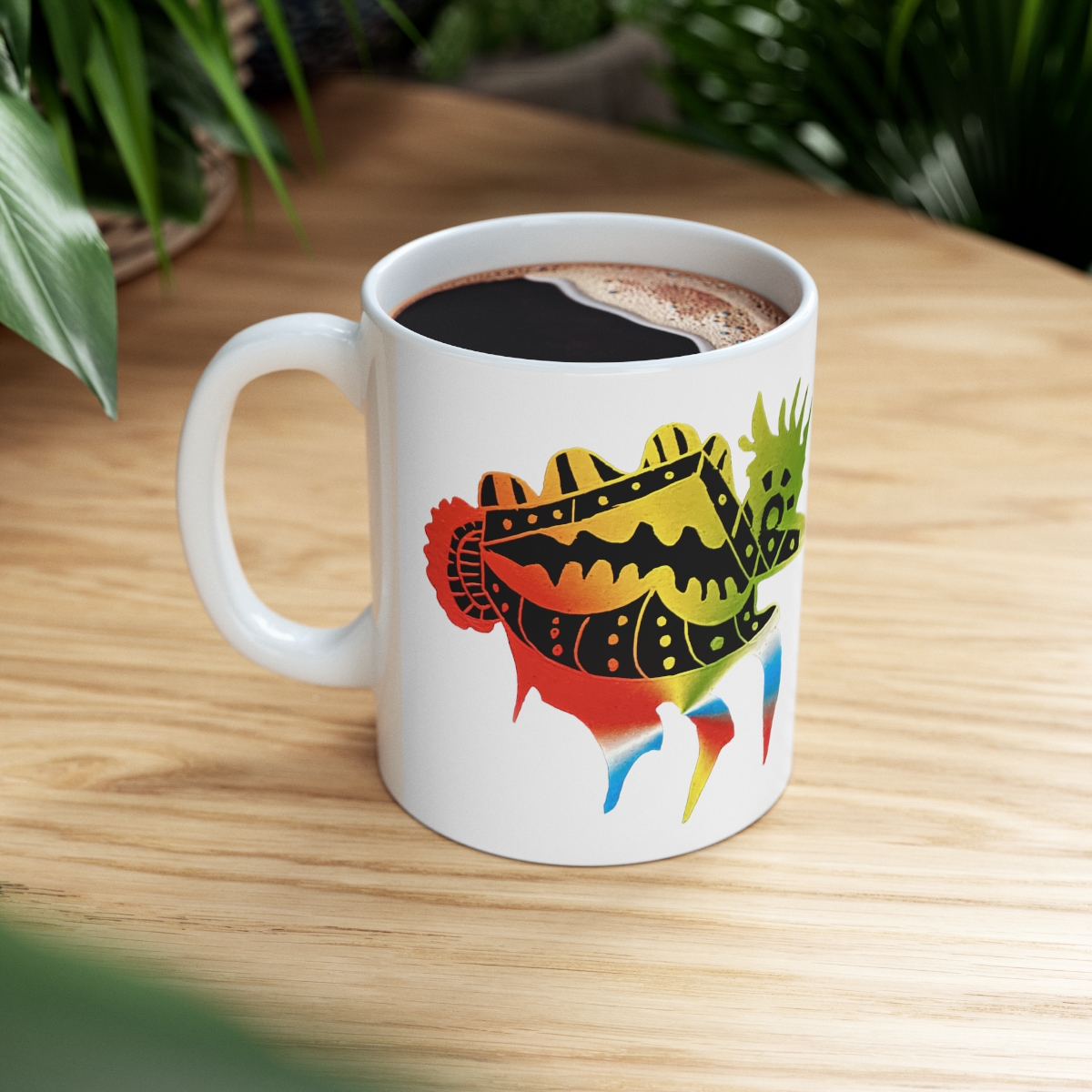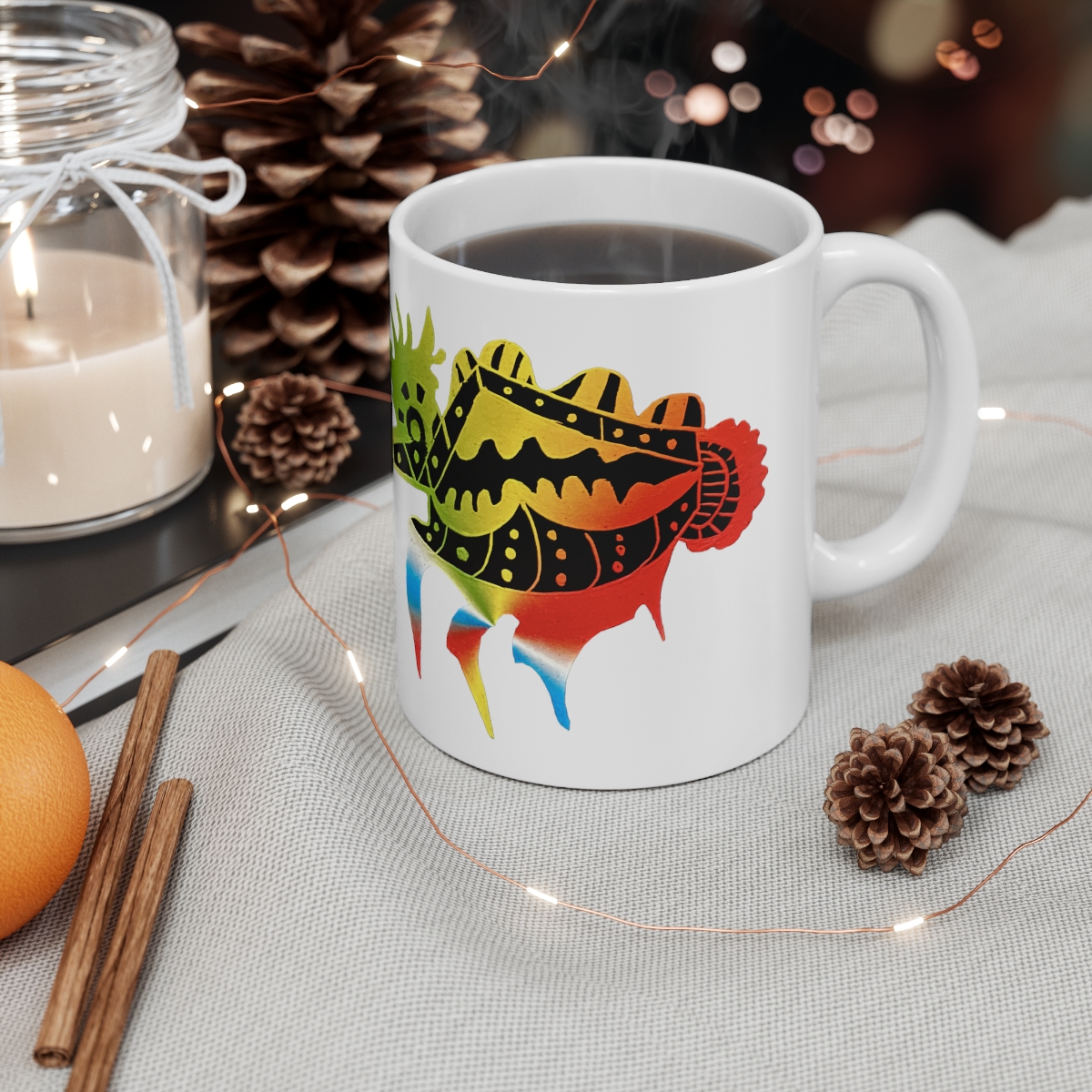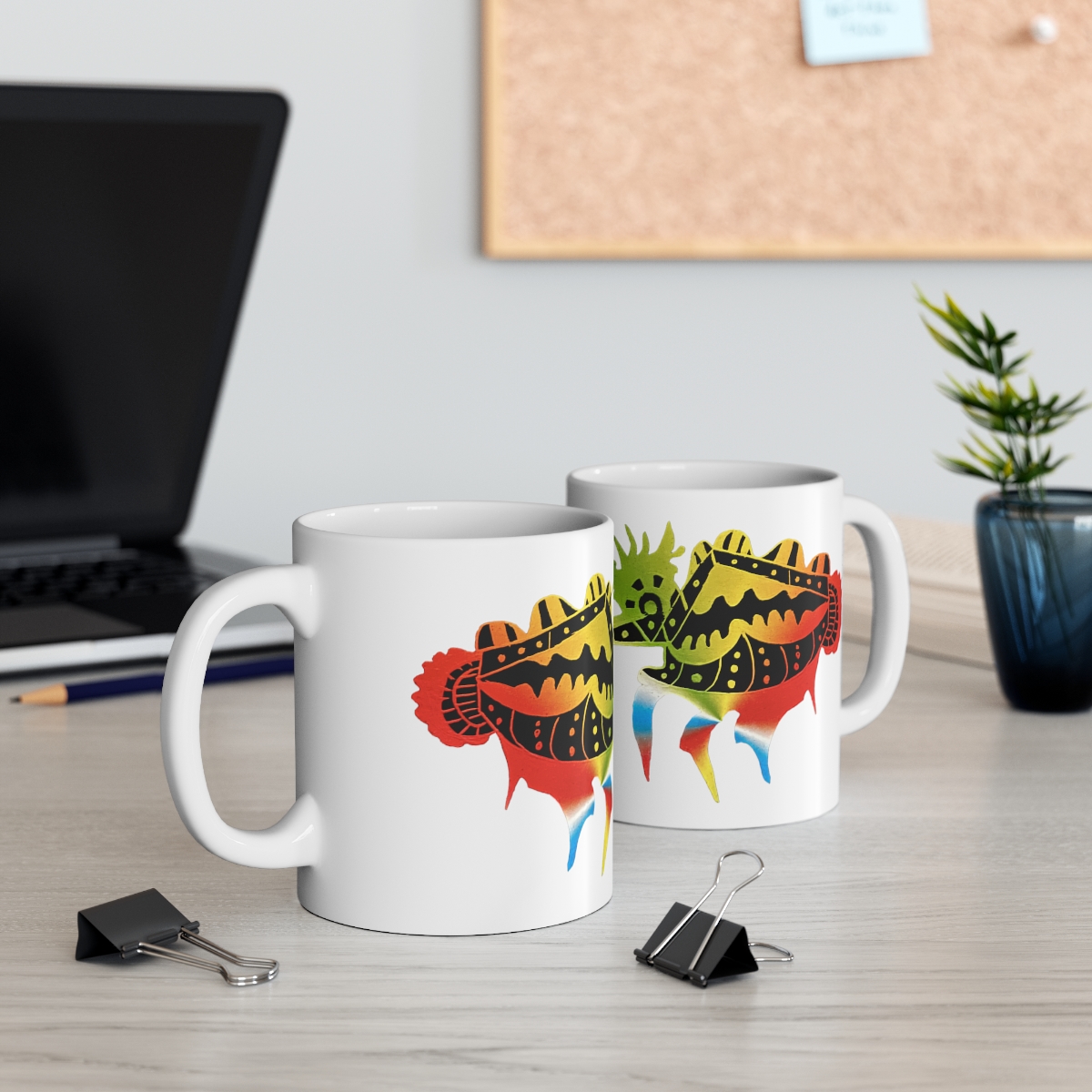 Warm-up with a nice cuppa out of this customized ceramic coffee mug. Personalize it with cool designs, photos or logos to make that "aaahhh!" moment even better. It’s BPA and Lead-free, microwave & dishwasher-safe, and made of white, durable ceramic in 11-ounce size. Thanks to the advanced printing tech, your designs come to life with incredibly vivid colors – the perfect gift for coffee, tea, and chocolate lovers..: These 11oz (0.33 l) mugs are made with durable white ceramic so that your prints can stand out. .: All mugs feature a comfortable c-handle and a shiny finish so that they're both easy to use and great to look at..: Drink confidently on a daily basis as all mugs are lead and BPA-free.