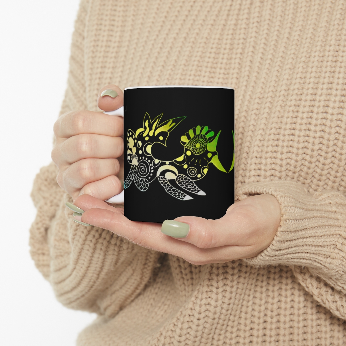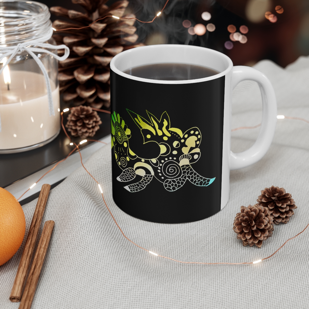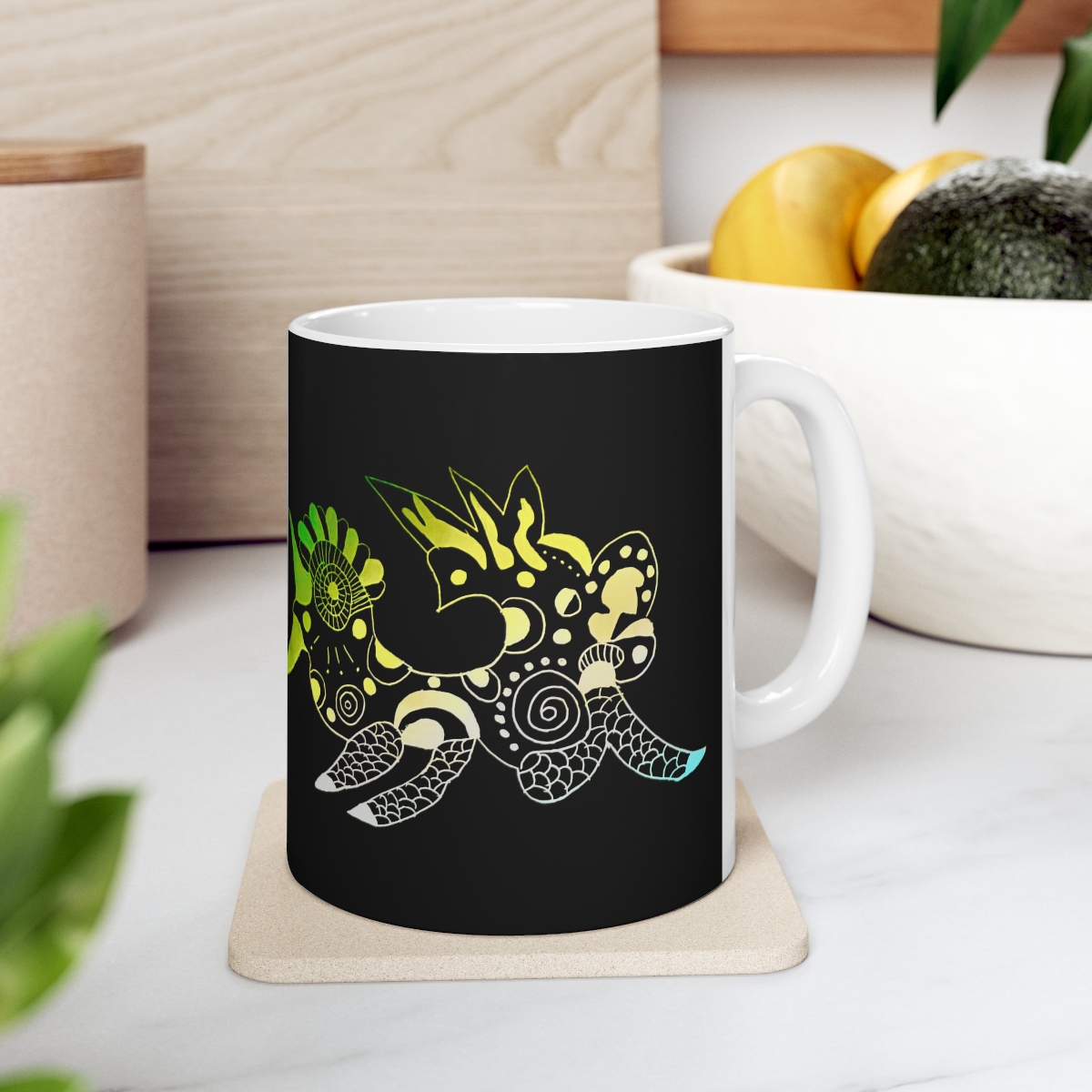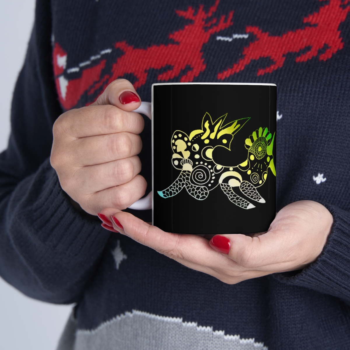 Warm-up with a nice cuppa out of this customized ceramic coffee mug. Personalize it with cool designs, photos or logos to make that "aaahhh!" moment even better. It’s BPA and Lead-free, microwave & dishwasher-safe, and made of white, durable ceramic in 11-ounce size. Thanks to the advanced printing tech, your designs come to life with incredibly vivid colors – the perfect gift for coffee, tea, and chocolate lovers..: These 11oz (0.33 l) mugs are made with durable white ceramic so that your prints can stand out. .: All mugs feature a comfortable c-handle and a shiny finish so that they're both easy to use and great to look at..: Drink confidently on a daily basis as all mugs are lead and BPA-free.