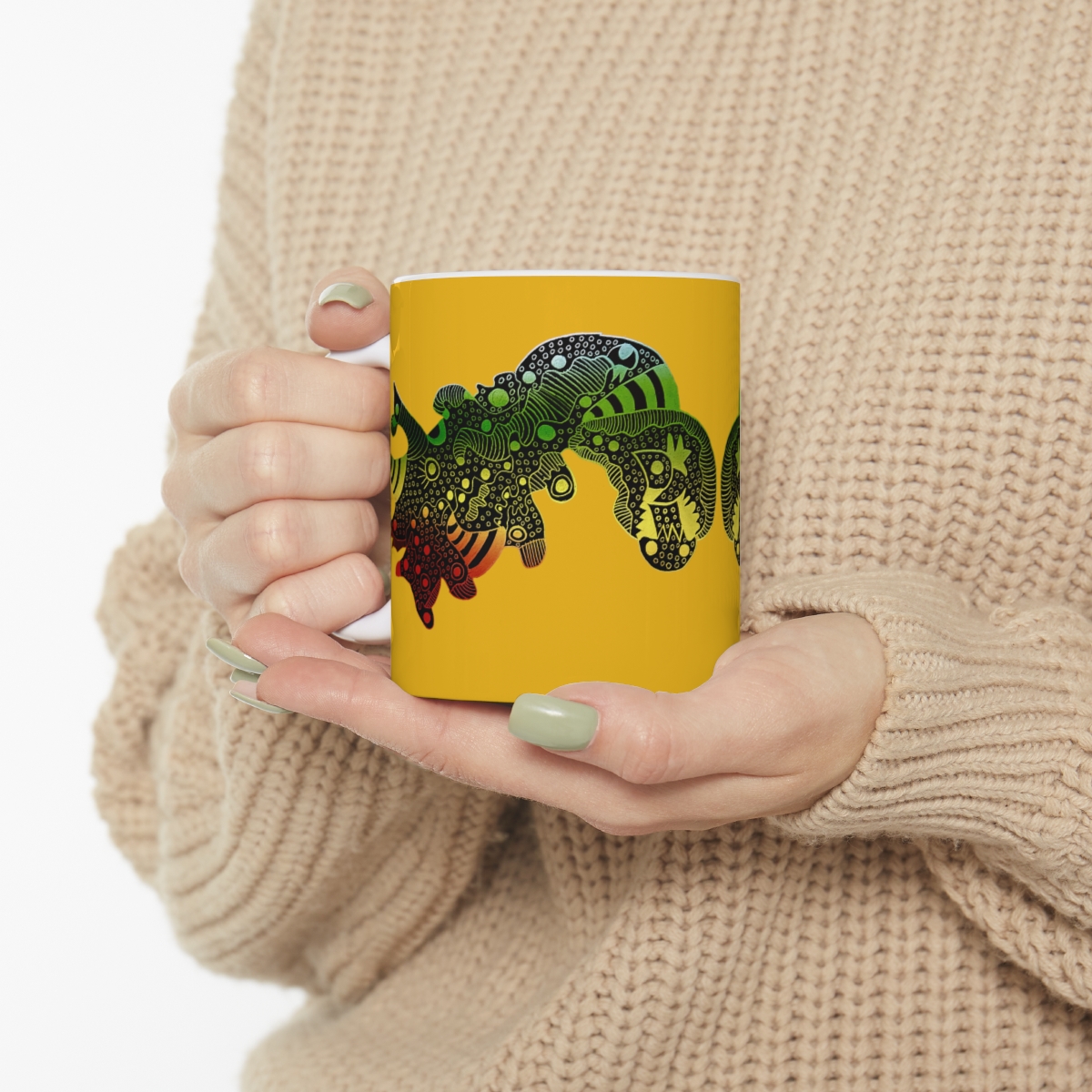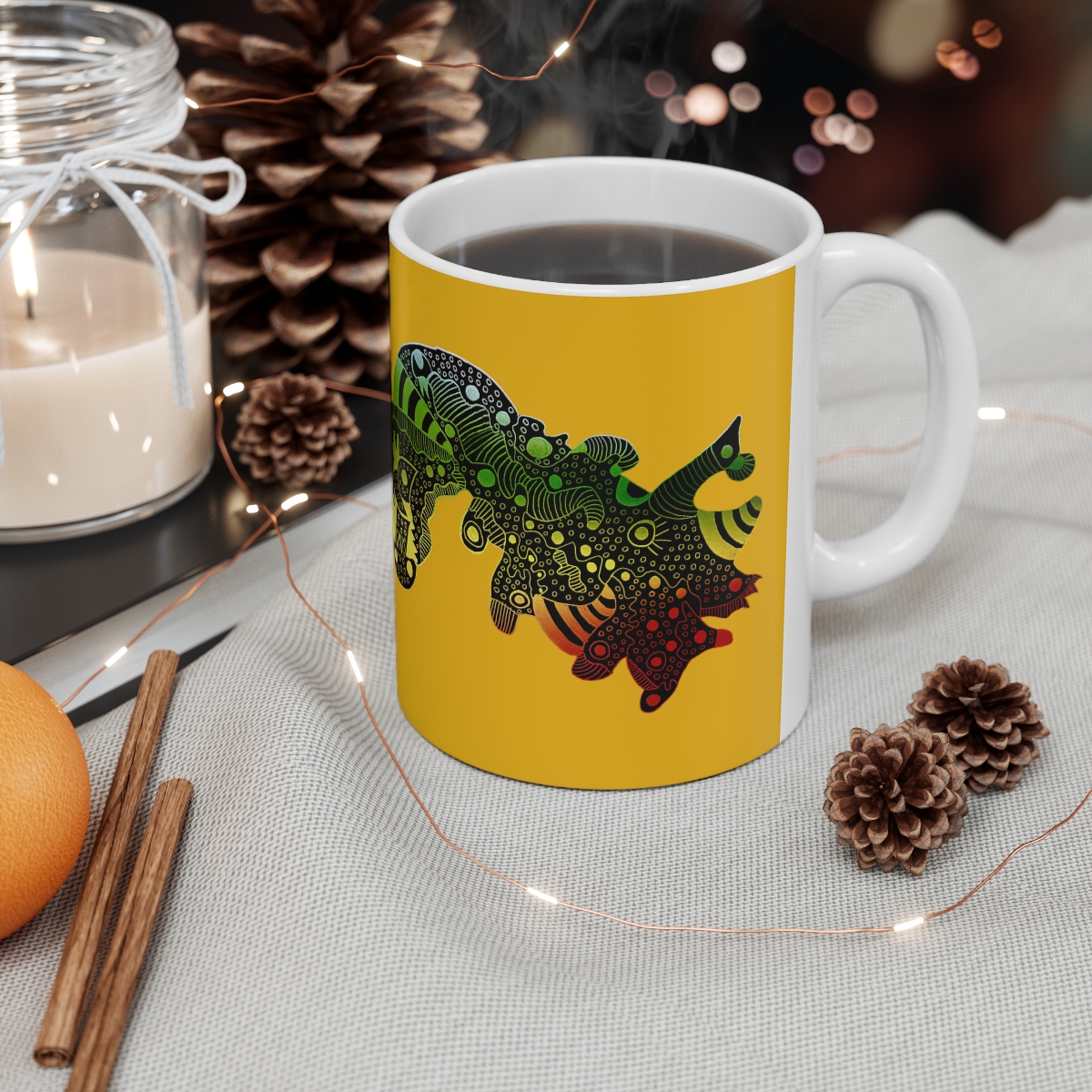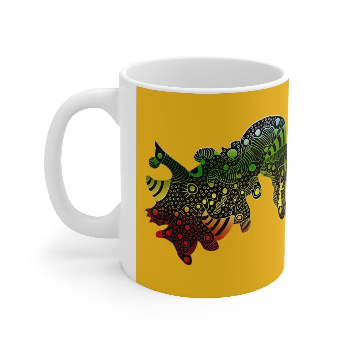 Warm-up with a nice cuppa out of this customized ceramic coffee mug. Personalize it with cool designs, photos or logos to make that "aaahhh!" moment even better. It’s BPA and Lead-free, microwave & dishwasher-safe, and made of white, durable ceramic in 11-ounce size. Thanks to the advanced printing tech, your designs come to life with incredibly vivid colors – the perfect gift for coffee, tea, and chocolate lovers..: These 11oz (0.33 l) mugs are made with durable white ceramic so that your prints can stand out. .: All mugs feature a comfortable c-handle and a shiny finish so that they're both easy to use and great to look at..: Drink confidently on a daily basis as all mugs are lead and BPA-free.