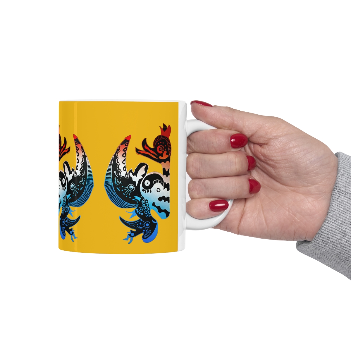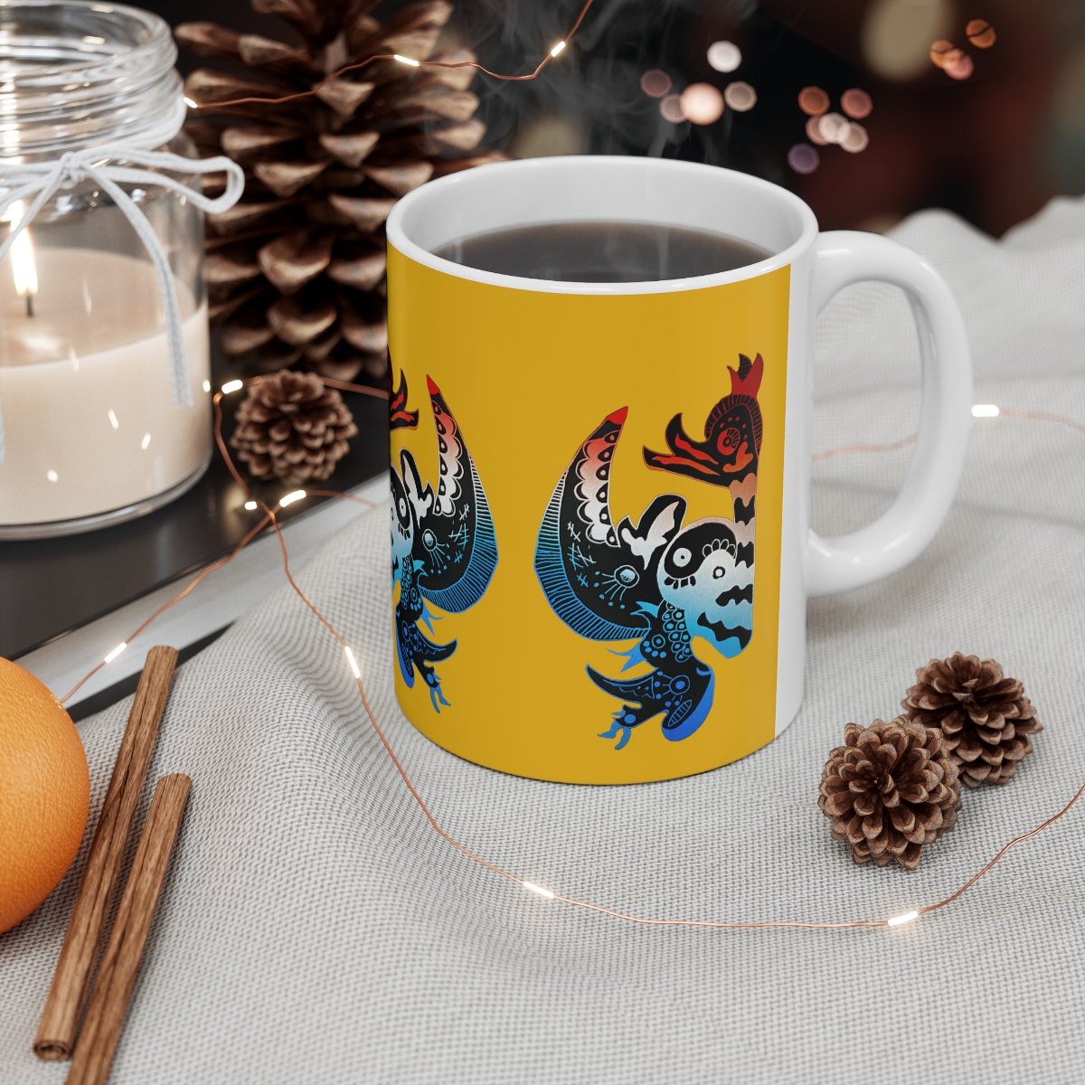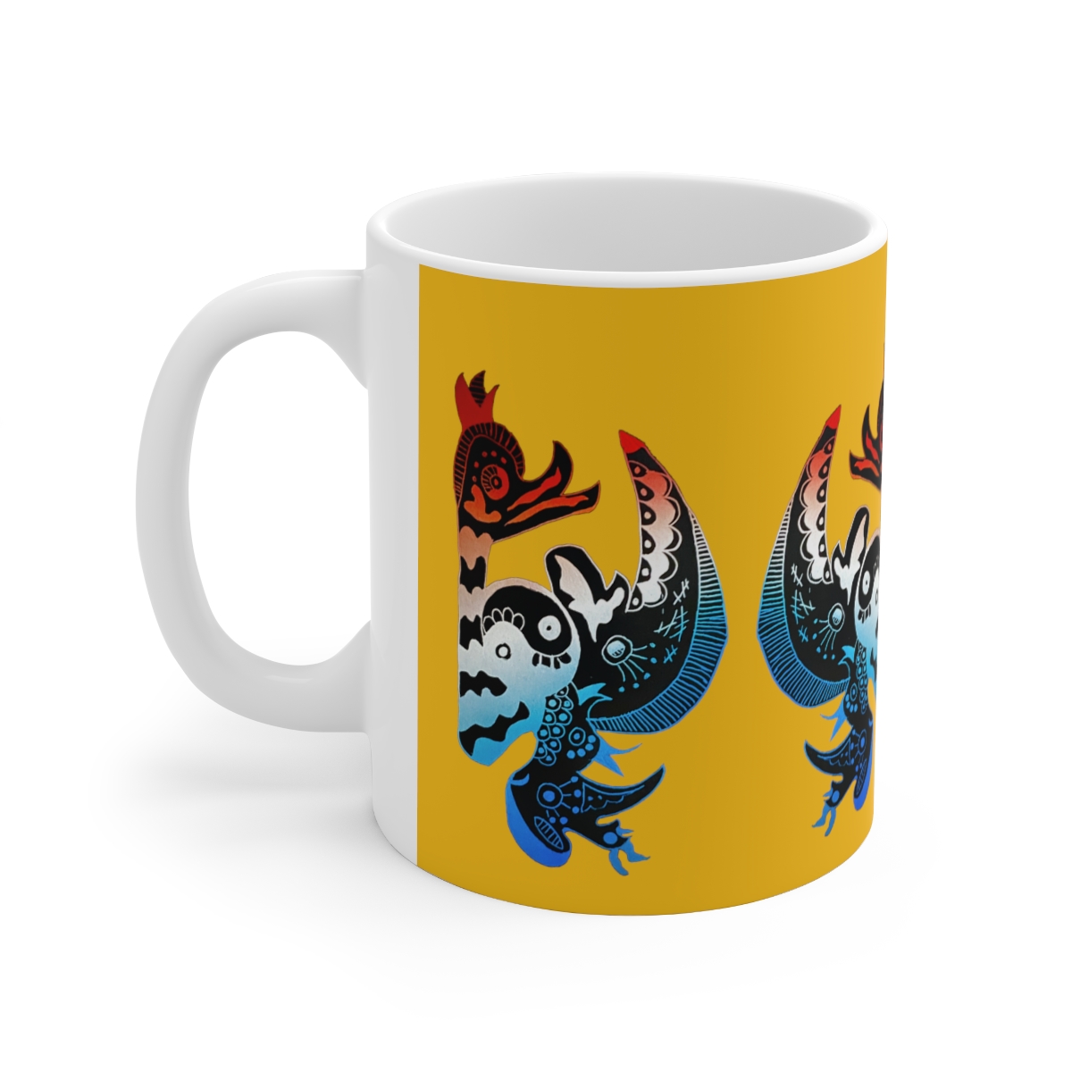 Warm-up with a nice cuppa out of this customized ceramic coffee mug. Personalize it with cool designs, photos or logos to make that "aaahhh!" moment even better. It’s BPA and Lead-free, microwave & dishwasher-safe, and made of white, durable ceramic in 11-ounce size. Thanks to the advanced printing tech, your designs come to life with incredibly vivid colors – the perfect gift for coffee, tea, and chocolate lovers..: These 11oz (0.33 l) mugs are made with durable white ceramic so that your prints can stand out. .: All mugs feature a comfortable c-handle and a shiny finish so that they're both easy to use and great to look at..: Drink confidently on a daily basis as all mugs are lead and BPA-free.