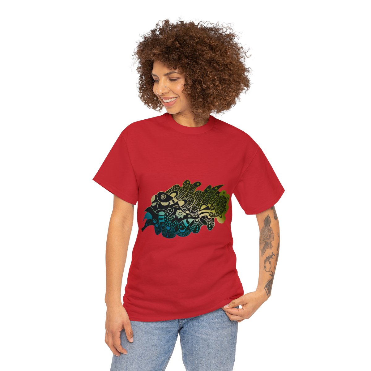 Uniseks ağır pamuklu tişört her gardırobun temel öğesidir. Gündelik modanın üzerinde büyüdüğü temel budur. İhtiyaç duyduğu tek şey, işleri karlılığa yükseltmek için kişiselleştirilmiş bir tasarımdır. Özel olarak eğrilmiş fiberler üstün baskı canlılığı ve keskinliği için pürüzsüz bir yüzey sağlar. Yan dikişlerin olmaması, koltuk altlarında kaşıntılı kesintilerin olmayacağı anlamına gelir. Omuzlarda daha fazla dayanıklılık için bant bulunur.